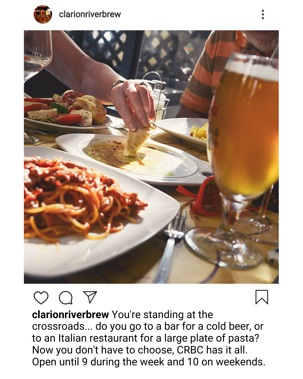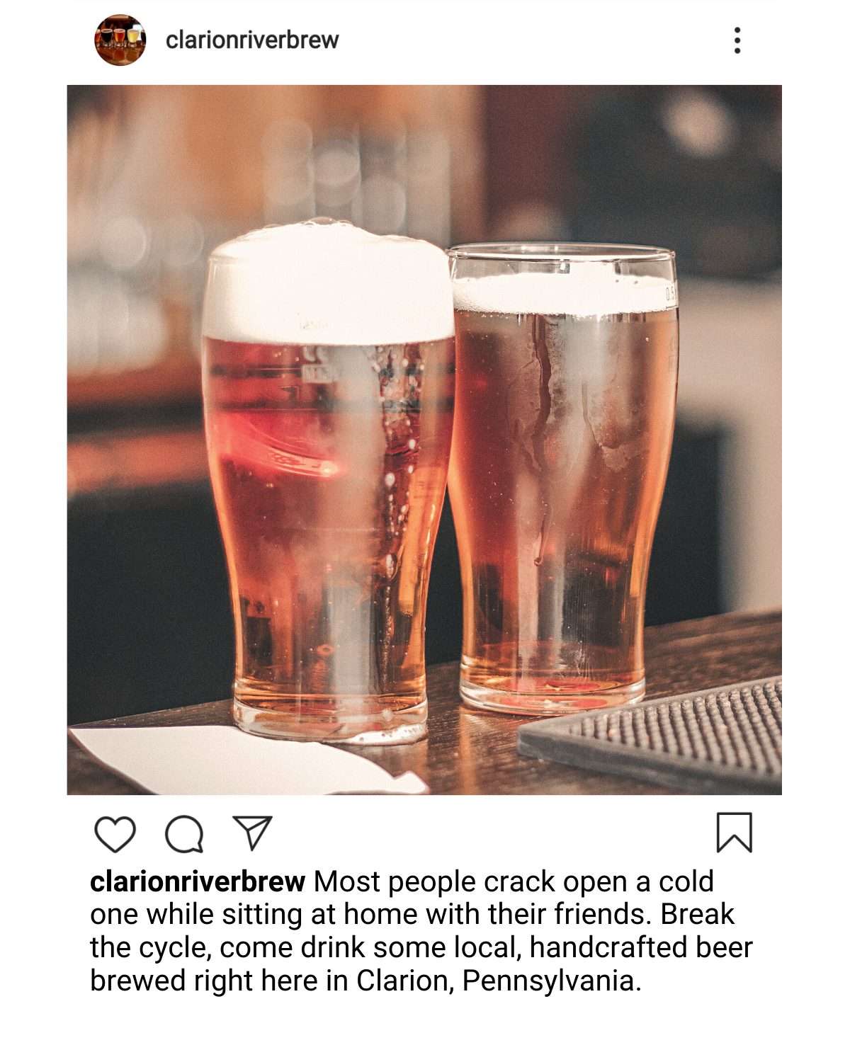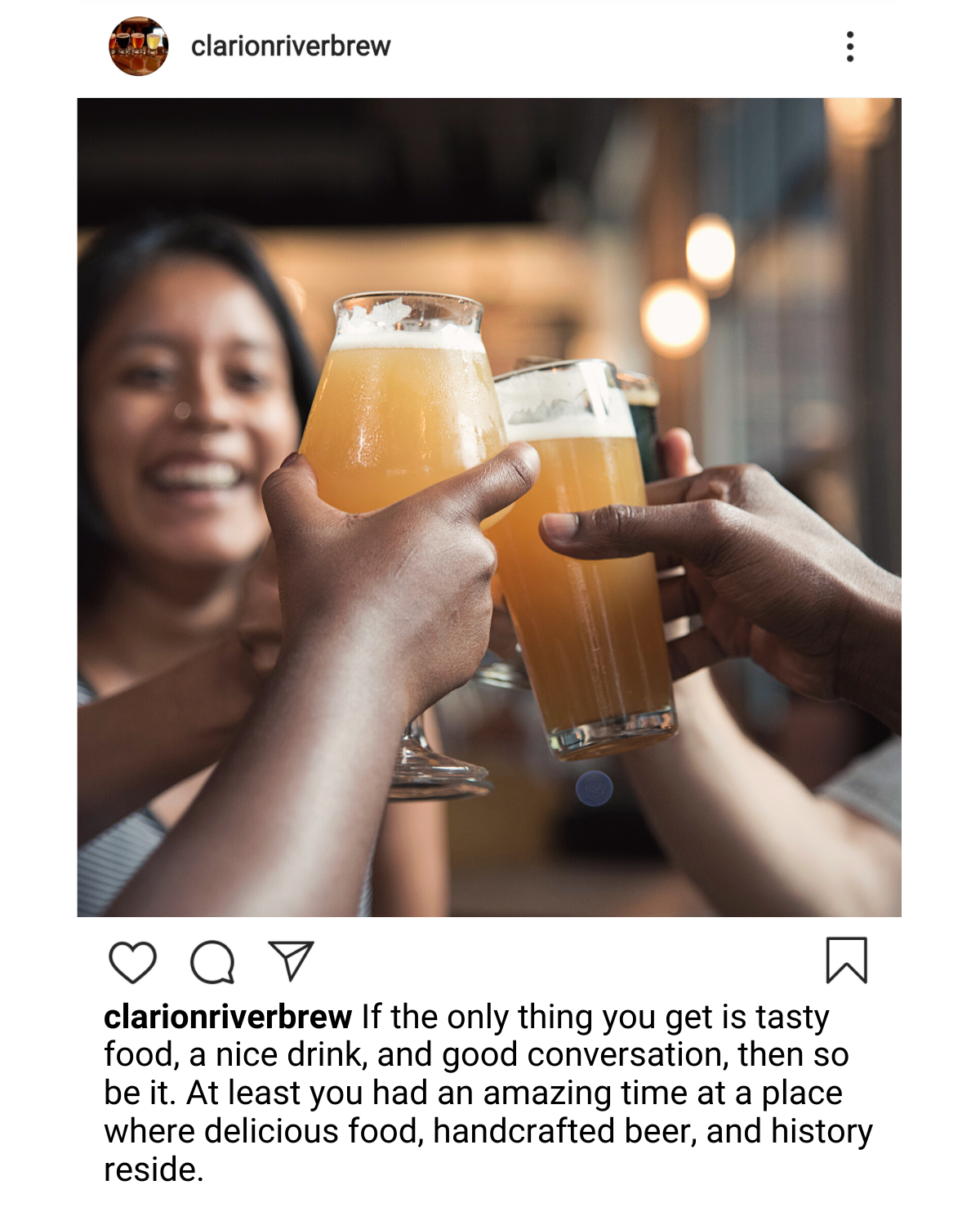Clarion River Brewing Company’s website includes their food and drink menus, as well as some of their history, It also has a page with all of their entertainment and events, as well as their specials. The Facebook page has all of the open mics, live music and other events listed as upcoming events on their page. Guests can say whether they are interested in going so that they can get notifications about the event. They also post about their food and their specials. Their Instagram on the other hand posts new brews that are available, appreciation posts of the local area, some of their events and food, but is primarily focused on their drinks and brewing.
